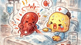 内科 血色素誘発性急性腎障害の予防(横紋筋融解症、溶血) 腎障害を防ぐため、ボリューム不足の補正と尿細管円柱形成の予防を目標として治療を行う。CK値が筋損傷の程度と相関することが知られており、腎障害リスクがあるか否かの判断にCKを用いる。CK > 5000 units/L を閾値とするが、CKがこ... 2025.08.17 内科