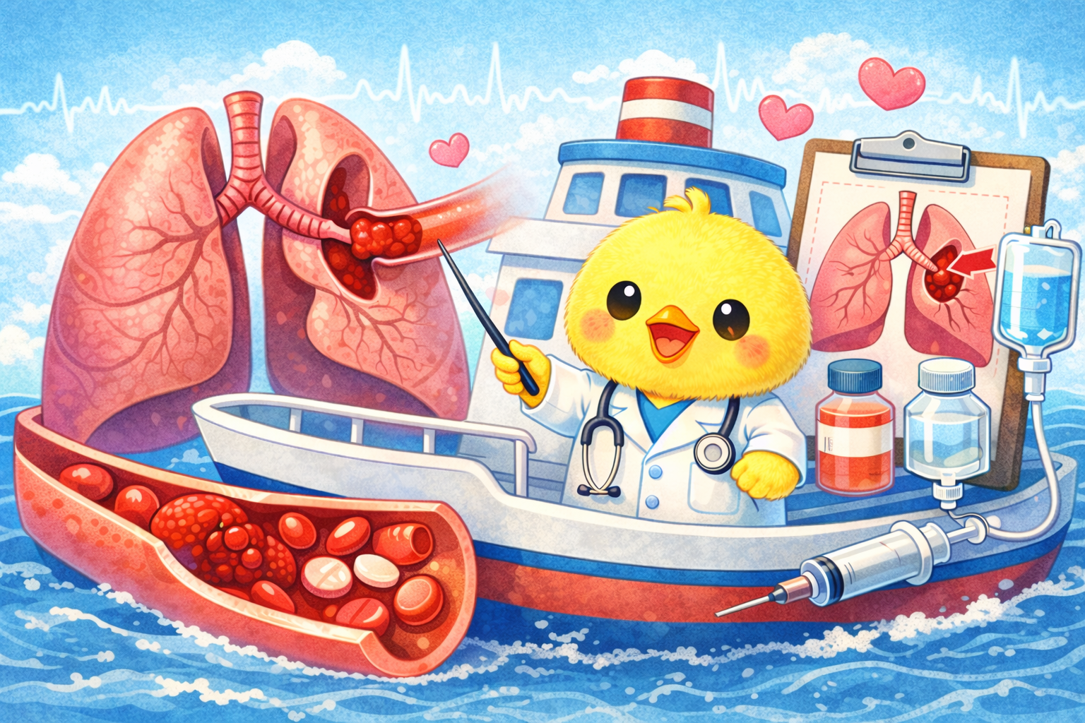 抗凝固薬は少なくとも3ヶ月間は投与し、その後の継続要否はPEの誘引となった因子や出血リスクによって判断します。活動性のがん患者の場合には、癌が治癒しないかぎり継続します。