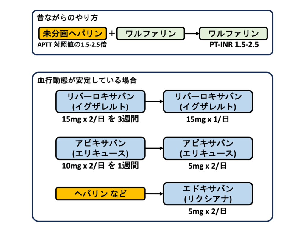 抗凝固薬の使い分けの詳細はPE・DVTの抗凝固療法も参考にしてください。