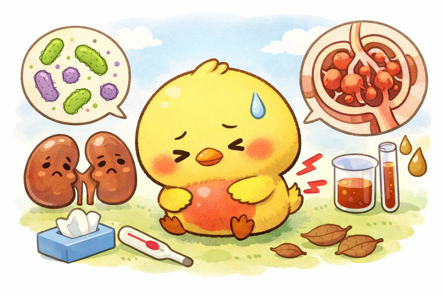 糸球体腎炎など、糸球体の炎症によって尿路感染でないのに血尿・白血球尿をきたす疾患は、”nephritic syndrome” (日本語で「ネフローゼ」と訳される “nephrotic” とは別の概念であることに注意) と称されます。高血圧、腎機能低下を伴うほか、原疾患によっては、肺胞出血や触知可能な紫斑 (palpable purpura)、血管炎を合併している場合もあります。